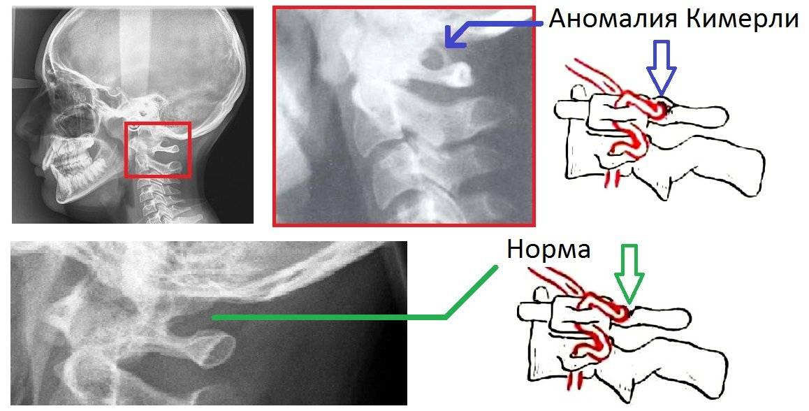 Путь позвоночной артерии на выходе из шейной зоны пролегает через костную бороздку: кивки, резкие повороты головы никак не сказываются на состоянии этой самой артерии. Присутствие костного навеса, которым представлен синдром Киммерли, препятствует свободному перемещению артерии над костной бороздкой.