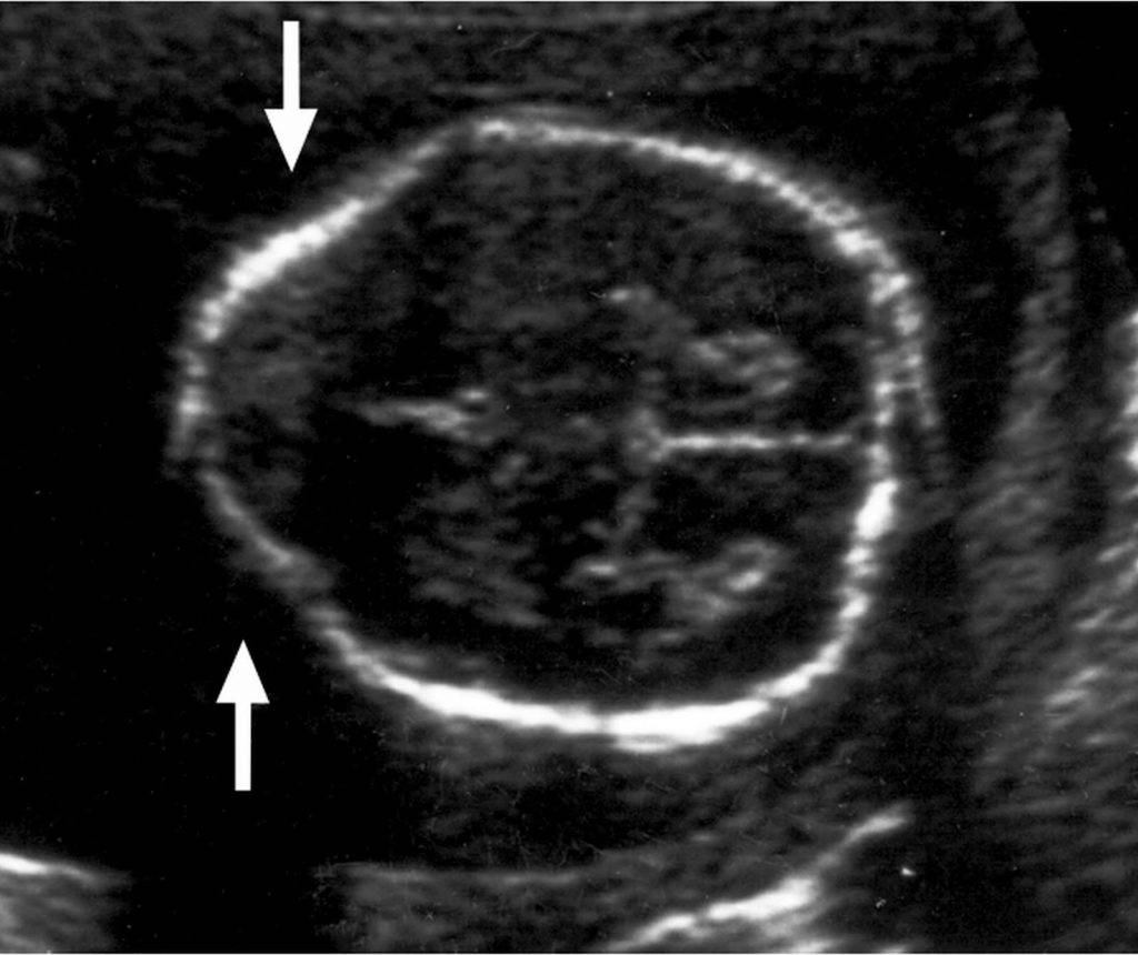- Неправильное развитие костей черепа у плода – слишком маленькая задняя ямка черепа у правильно развивающегося малыша приводит к несоответствии роста костей черепа и мозга. Попросту черепные кости не поспевают за мозгом.
