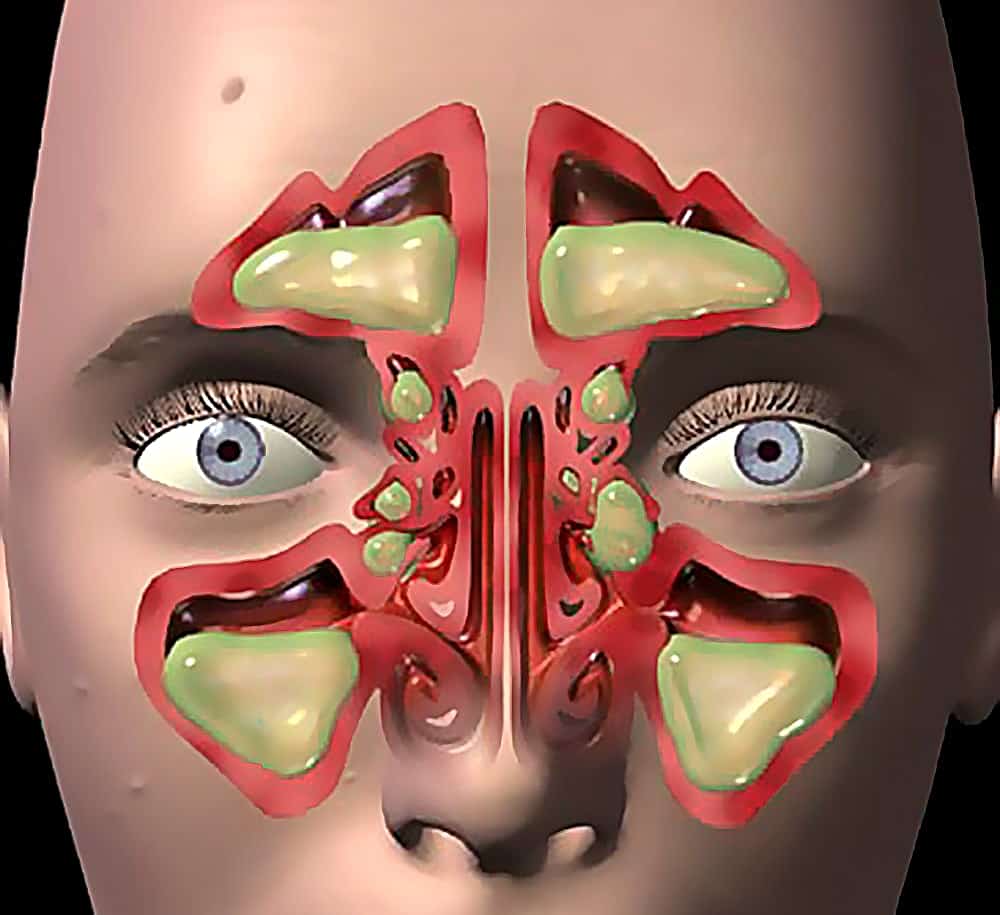 - Двусторонний фронтит беспокоит выделениями, вытекающими из обеих ноздрей, что говорит о воспалении с двух сторон.