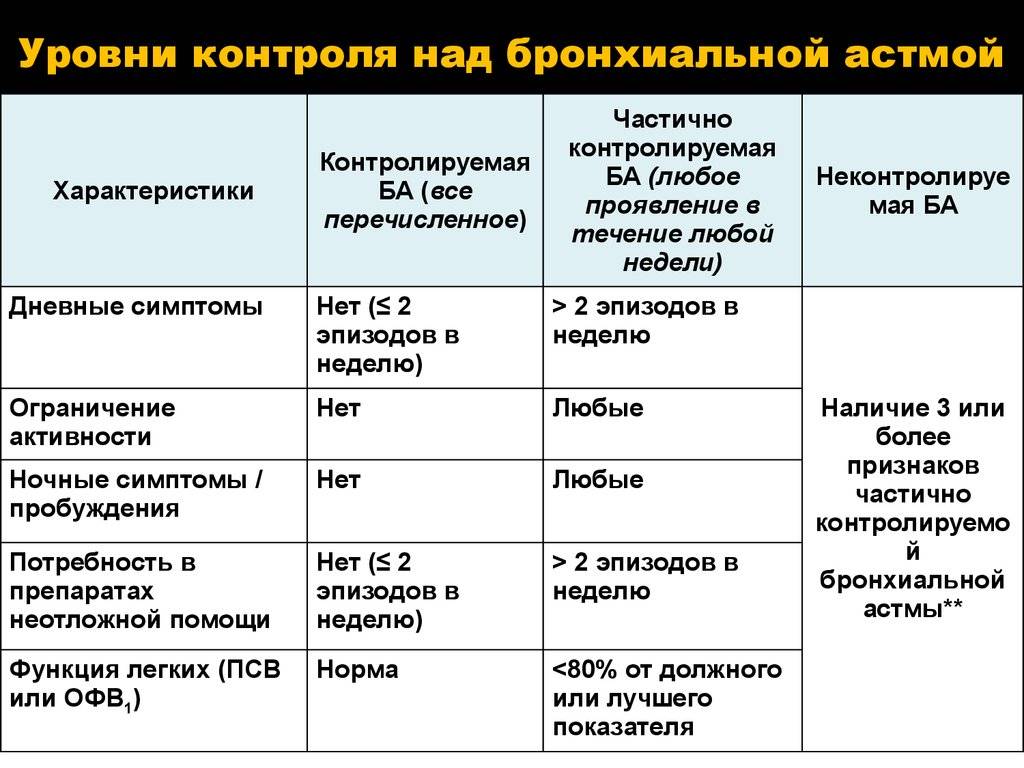 - Частично контролируемая — отмечается наличие отдельных симптомов заболевания. В этом случае рекомендуется смена терапевтических мероприятий для возвращения болезни в контролируемую форму.
