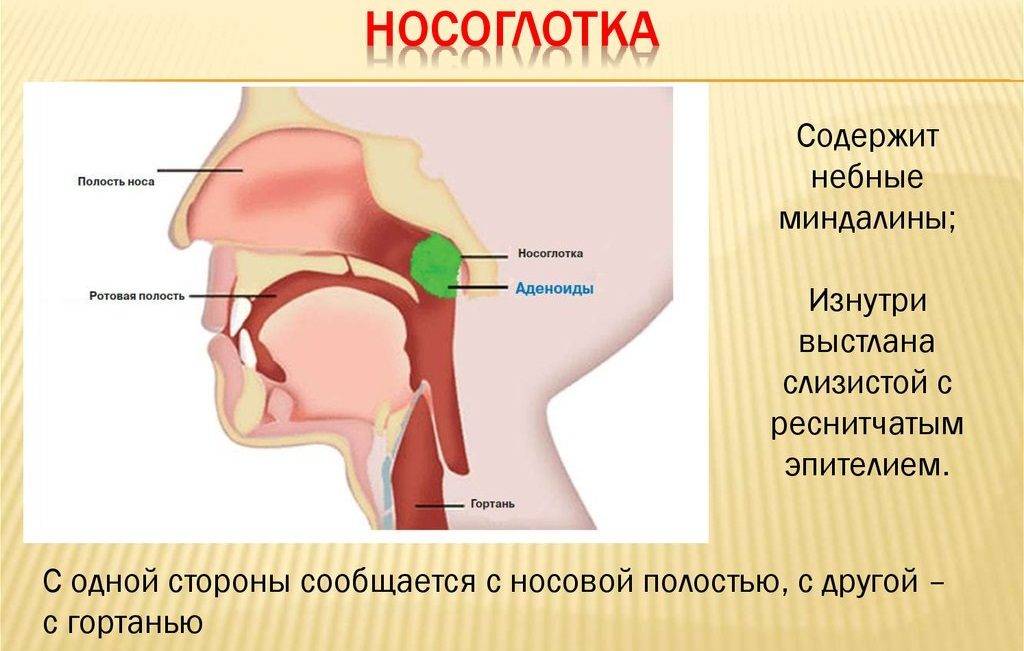 Патологически разросшаяся носоглоточная миндалина носит название “аденоиды”