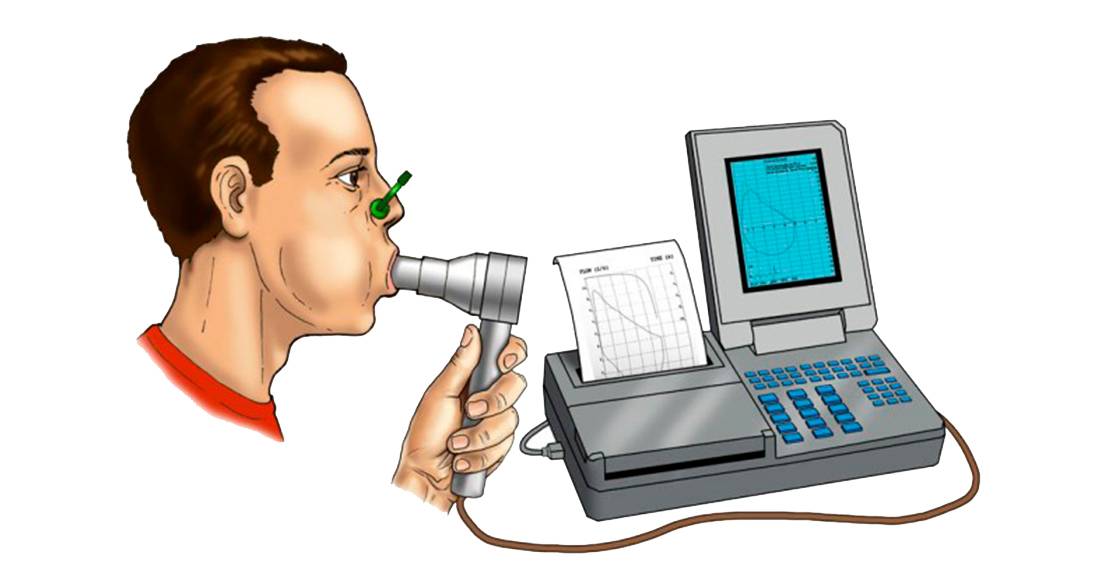 - Пневмотахография фиксирует объемы вдыхаемого и выдыхаемого воздуха в форсированном режиме, что дает возможность обнаружить бронхиальную обструкцию.