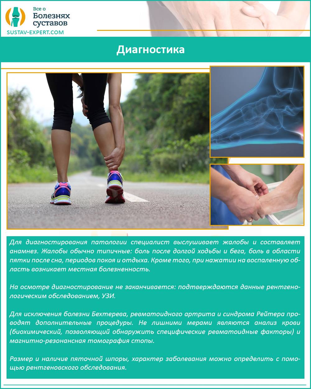 Определить размеры, дать точное описание и наличие пяточной шпоры, как уже говорилось ранее можно посредством рентгена, МРТ, УЗИ.