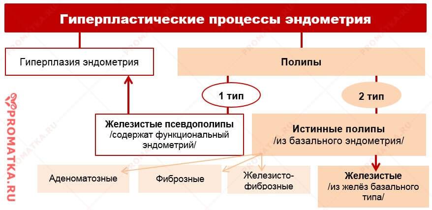 Железистые полипы 1-го типа в основном развиваются на фоне диффузной гиперплазии эндометрия и чаще подвергаются озлокачествлению.