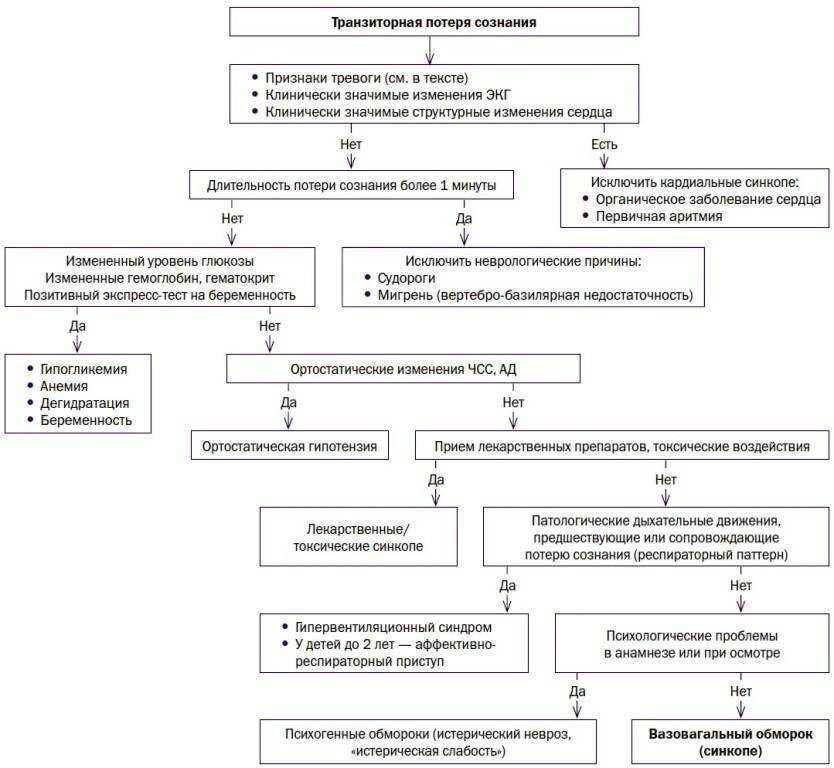 Конечно, возможны и более редкие причины потери сознания: в последнем консенсусе Европейской кардиологической ассоциации упоминается не менее 30 возможных причин синкопальных состояний, многие из которых, в свою очередь, разделяются на подгруппы.