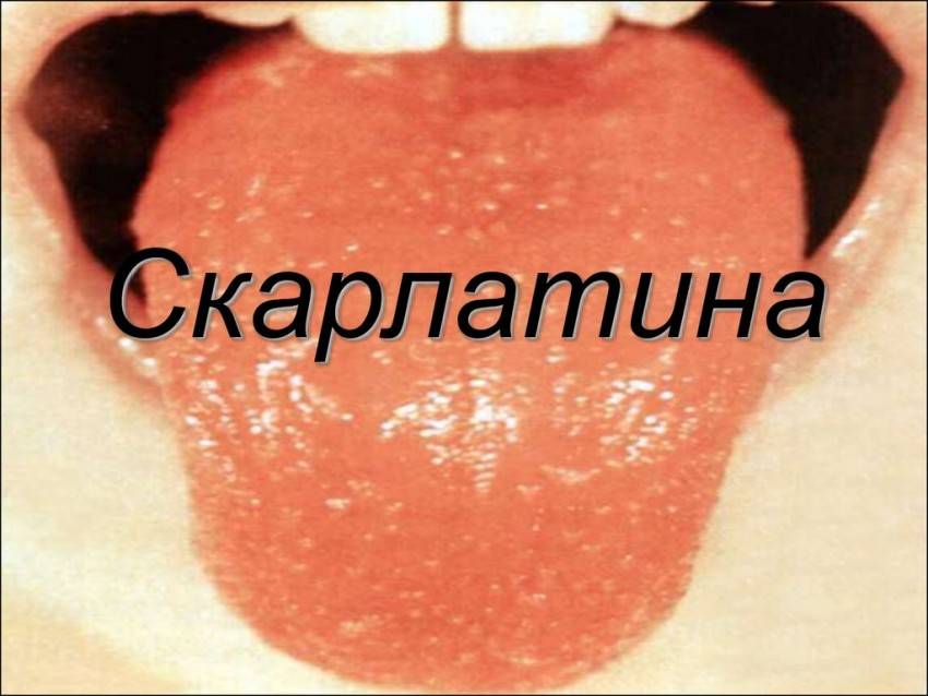 При скарлатине происходят характерные изменения на языке. В первые два-три дня болезни на нём появляется белый или буроватый налёт. Потом язык очищается и становятся хорошо видны покраснения его слизистой, а сосочки увеличены в размерах. По цвету и характеру поверхность напоминает ягоды малины. Его так и называют — малиновый или клубничный язык. Изменения сохраняются до 12 дня болезни.