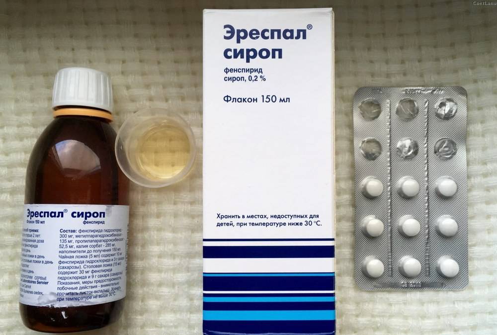 Эреспал выпускается в форме таблеток и сиропа. Из-за минимальности побочных эффектов фенспирид можно применять у новорожденных детей.