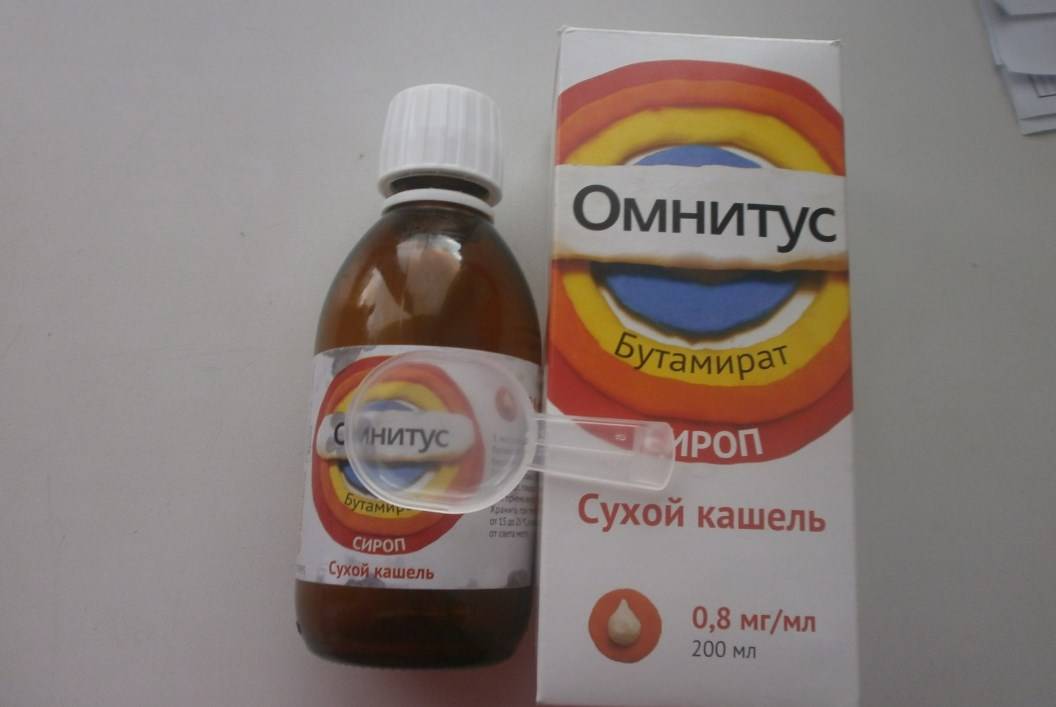 - Омнитус. Действующее вещество — цитрат бутамирата. Раствор имеет ванильный привкус. Отличается быстрым воздействием. Не назначается беременным женщинам до 12 недель и детям младше 3 лет.