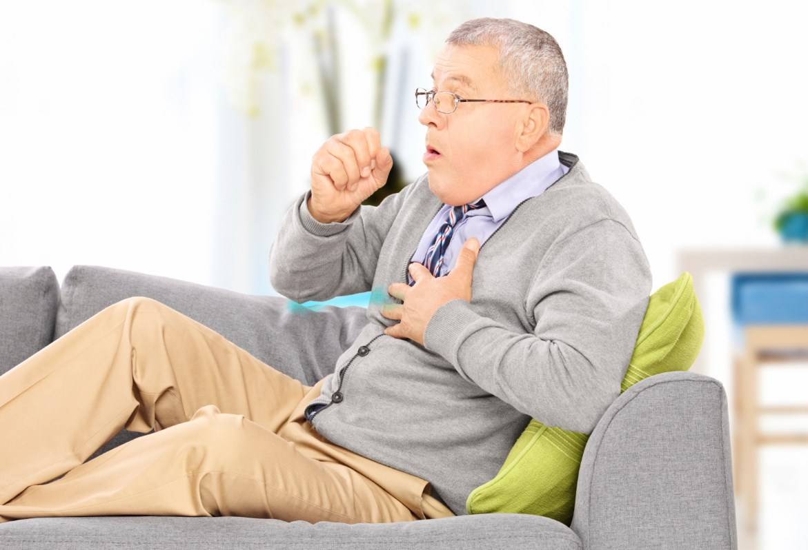 Начинается одышка, которая приводит к иссушению слизистых оболочек дыхательных путей. Итогом становится кашель, при этом далеко не всегда интенсивный.
