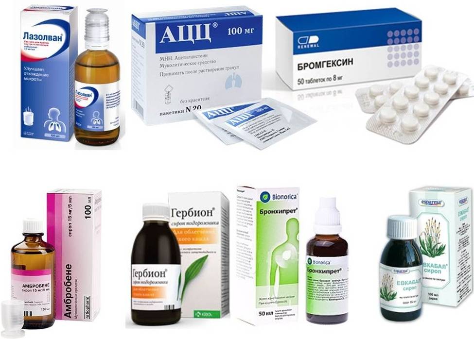 При появлении влажного кашля и трудно отделяемой мокроты применяются отхаркивающие, средства, разжижающие мокроту.