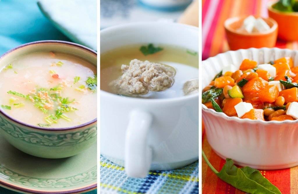 - Супы, приготовленные только на овощных бульонах с перетертыми овощами. Можно готовить супы-пюре и супы-кремы, молочные супы (молоко разводится водой). В супы можно класть крупы (манную, рис, геркулес, но хорошо разваривать или протирать). Разрешается овощи очень мелко шинковать (картофель, морковь, тыква, кабачки), для заправки супов поджаривать их нельзя. Заправляют супы сметаной, молоком, сливками, сливочным маслом или просто подсушенной мукой.