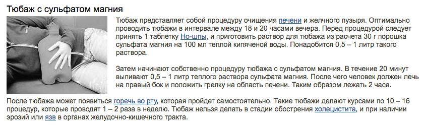 Тюбаж чистка печени магнезией – процедура, требующая внимательного к себе отношения. Как и любой метод лечения, даже при отсутствии противопоказаний, не гарантирует полного выздоровления.
